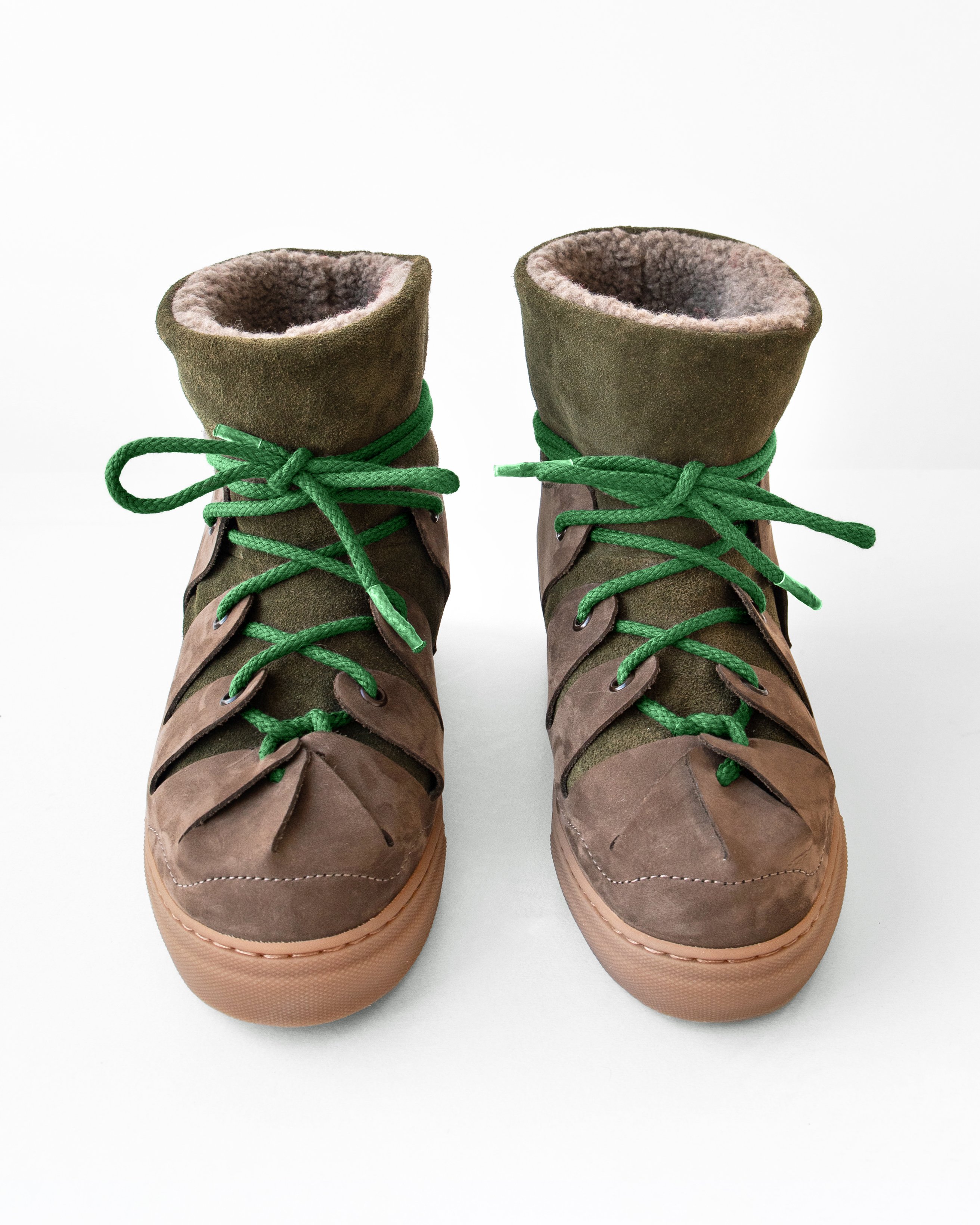 Set de două șireturi verzi din bumbac, pentru modelul Opinca Aurora.